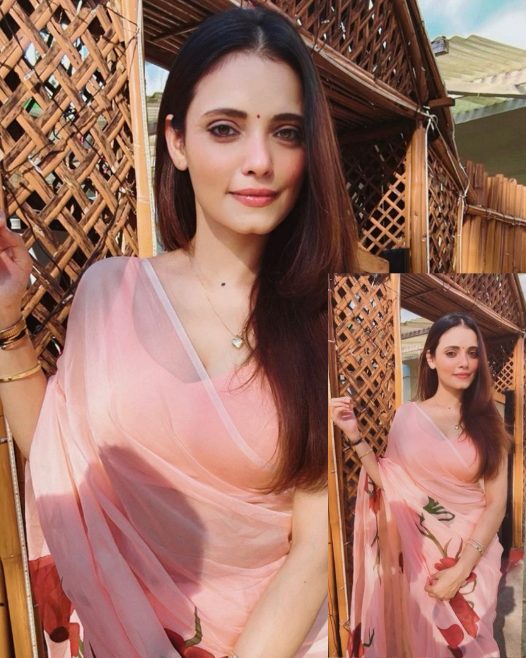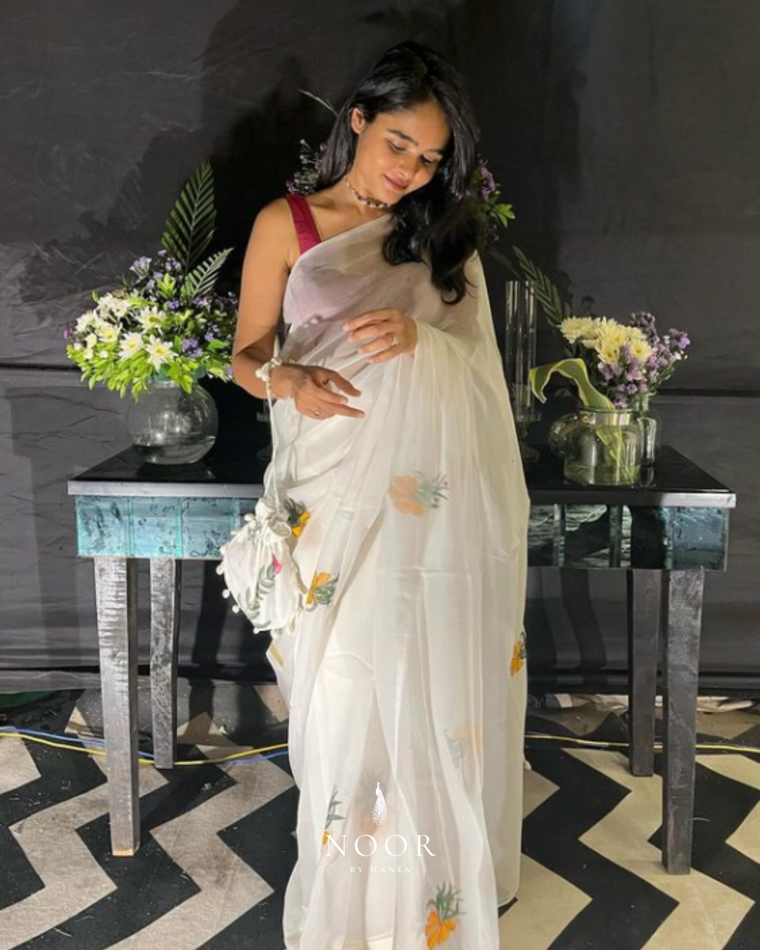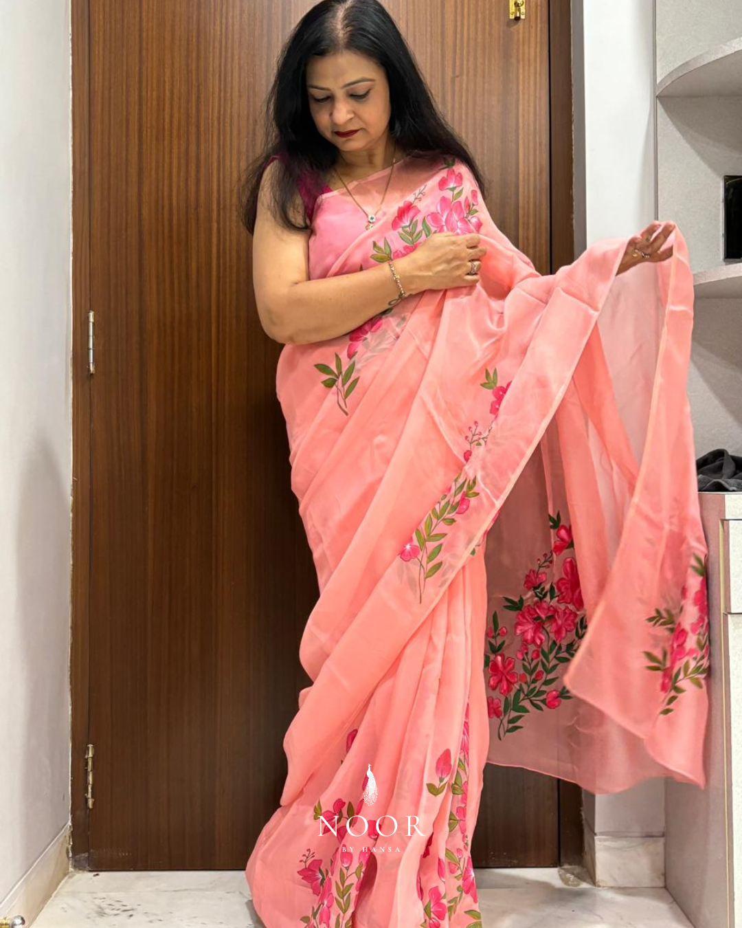 celeste hand painted 'champa' organza silk saree