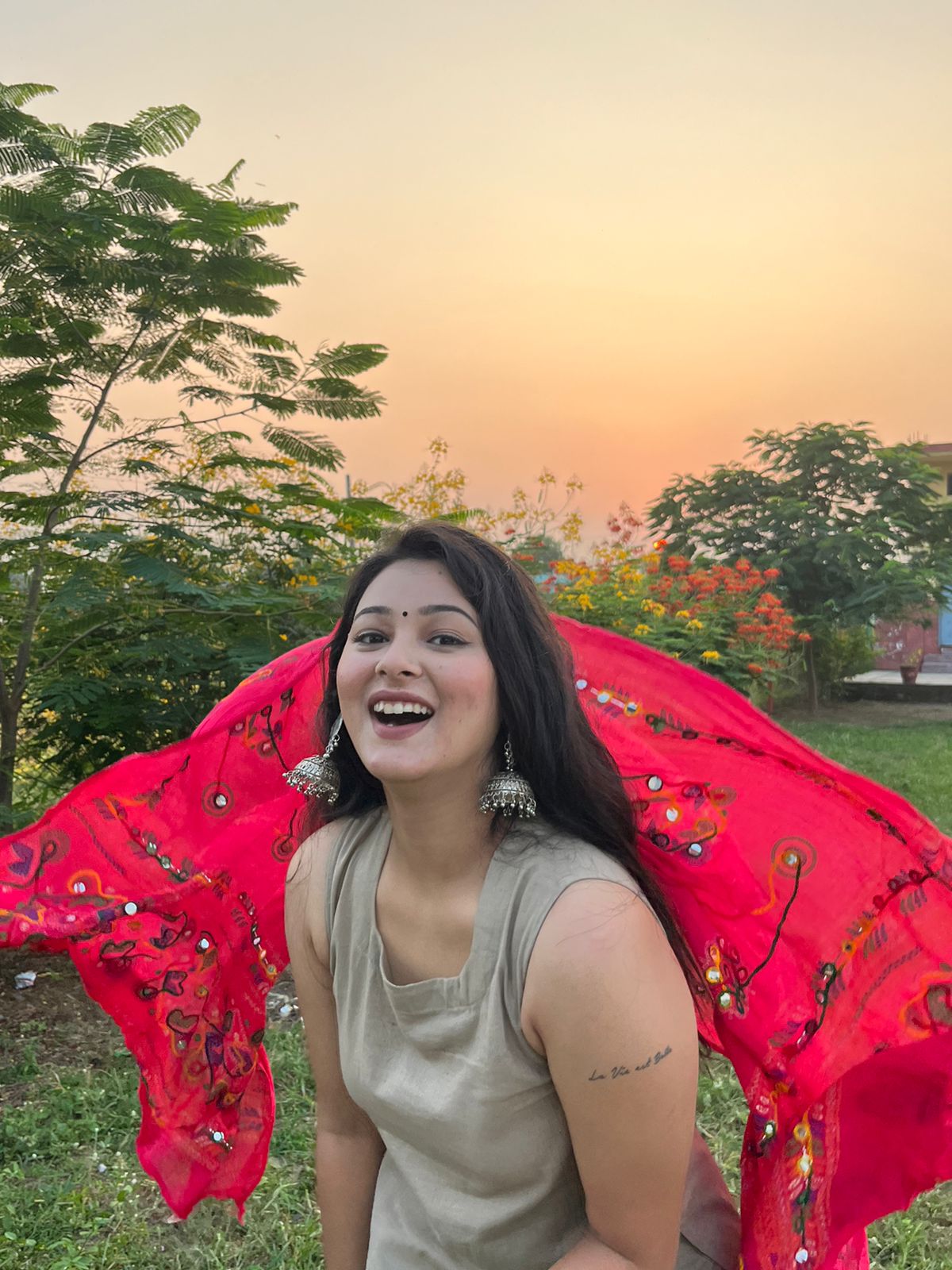 hand painted tissue 'guldasta' odhani