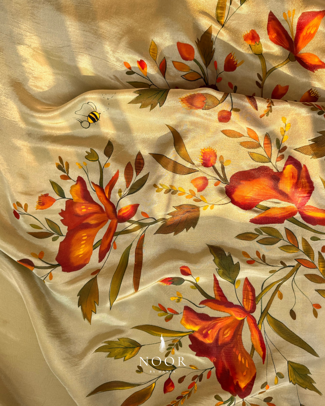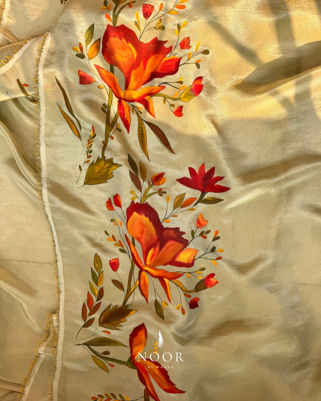 hand painted gold tissue 'gulabari' saree
