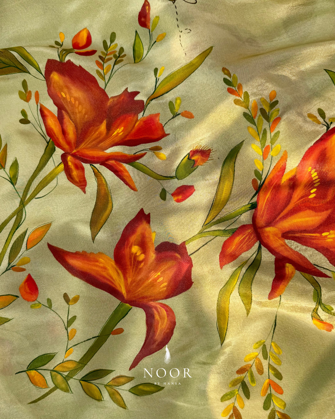 hand painted gold-mint tissue 'gulmohar' saree