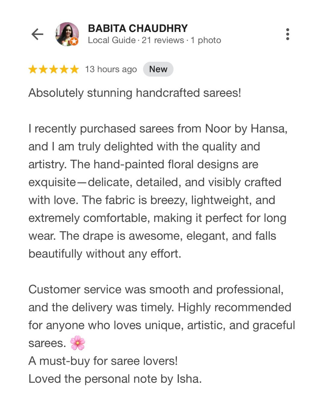 we're a small, women-run, purpose-led artisanal shop handcrafting indian wear for keepsake. dipped in art & indian nostalgia, noor by hansa⢠is a culmination of our dreams to drive impact through stories of women.